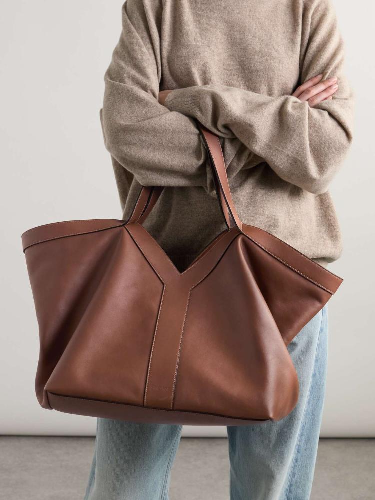 جلد بني (عجل)مقبضان علويانجيوب داخلية بسحاببطانة من الجلد المدبوغمشبك جراد البحر للإغلاق في الجزء العلوي المفتوحيأتي مع كيس الغبار